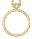 The Lumen features a sleek 14K yellow gold semi-set design with a 2.4mm half round shank, flush fit profile, and hidden halo for soft, radiant sparkle. Designed for a 10x8mm oval center, modern, low profile, and effortlessly refined.